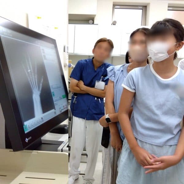 検査の過程では、「手を撮影板に置いてください」「そのまま動かないでください」「撮影を始めます」「終了しました」といった一連の指示を、まるで経験者のようにスムーズに伝え、初めてとは思えないほど自然に検査を進めていきます。