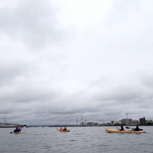 カヤックの基本的な操縦方法を学びながら、水面から眺める東京の景色を楽しみます。