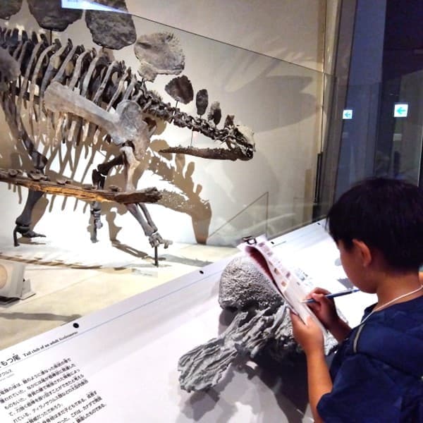 「Great job! This is a Futabasaurus. It’s the first dinosaur fossil discovered in Japan.」と先生が優しく解説。